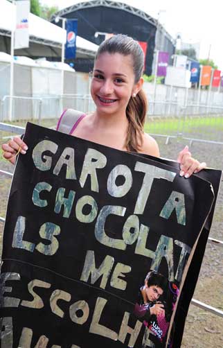 Os planetários estavam também à espera da aparição de algum ídolo para fotografar. Quando o caminhão da equipe do Luan Santana chegou, se agitaram. O coração de Amanda Bavaresco, 15 anos, disparou. Ela estava desde cedo na fila, acompanhada da amiga Paola Ferrari, da mesma idade. Amanda tem um sonho: ser a garota chocolate do jovem cantor.